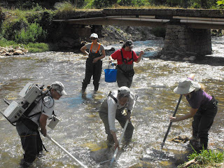 | Electrofishing in a very cold trout stream near Kleitoria in the Northern Peloponnese; some of us just took pics (photo by V.Hatzirvassanis) |